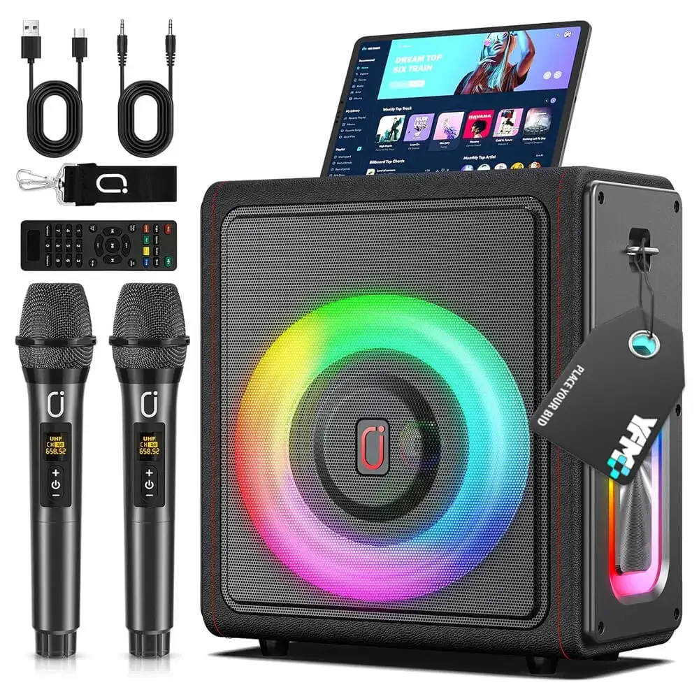 Karaoke Machine, Portable Bluetooth 5.3 Speaker with 2 Wireless Microphones